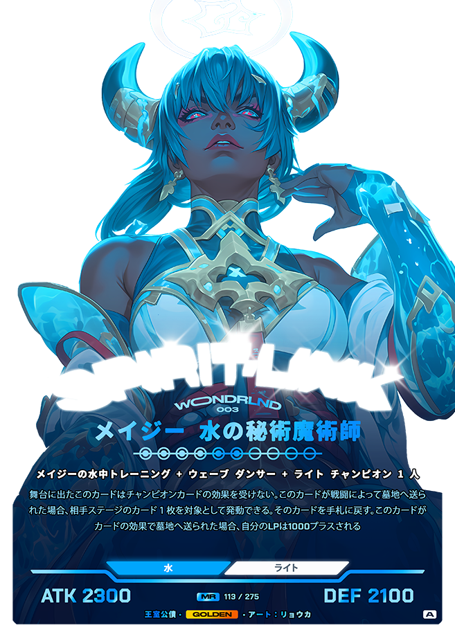 メイジーの水中トレーニング + ウェーブ ダンサー + ライト チャンピオン 1 人 舞台に出たこのカードはチャンピオンカードの効果を受けない。このカードが戦闘によって墓地へ送られた場合、相手ステージのカード1枚を対象として発動できる。そのカードを手札に戻す。このカードがカードの効果で墓地へ送られた場合、自分のLPは1000プラスされる