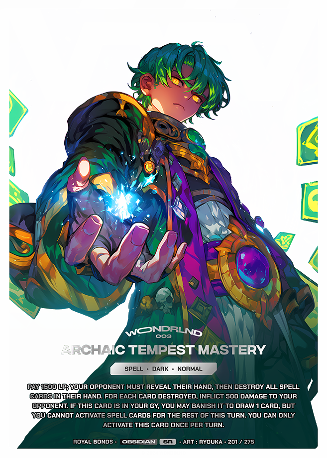 Pay 1500 LP; your opponent must reveal their hand, then destroy all Spell cards in their hand. For each card destroyed, inflict 500 damage to your opponent. If this card is in your GY, you may banish it to draw 1 card, but you cannot activate Spell cards for the rest of this turn. You can only activate this card once per turn.