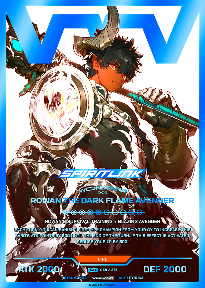 Rowan’s survival training + blazing avenger Each turn, you can banish 1 Fire-type Champion from your GY to increase this card’s ATK points by 500 until the end of the turn. If this effect is activated, reduce your LP by 500.