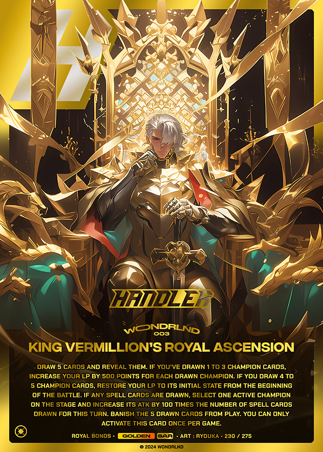 Pay 1000 LP. Choose 1 or more active champions on your stage and 1 or more handler cards in your hand, then discard them to the Graveyard to Special Summon a Psychic-type Spirit-Link champion from your Extra Deck. The cards discarded cards must be the prerequisite cards needed to summon the desired Spirit-Link champion.