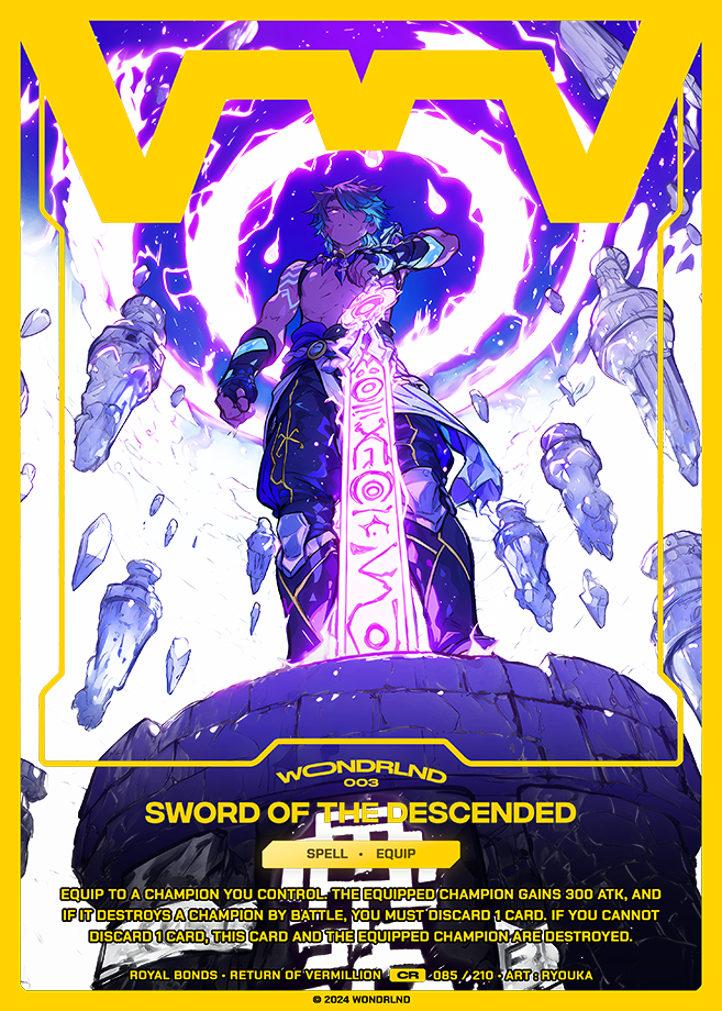 Equip to a Champion you control. The equipped Champion gains 300 ATK, and if it destroys a Champion by battle, you must discard 1 card. If you cannot discard 1 card, this card and the equipped Champion are destroyed.