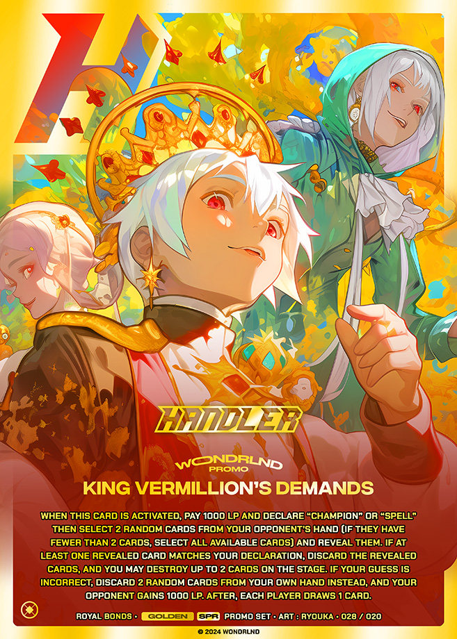 "Get ready to dive into the enchanting world of the latest WONDRLND TCG expansion! Brace yourself for a wild ride filled with mighty Handlers wielding jaw-dropping abilities, brand-new champions to conquer, and cards that are so stunning, they practically jump out of the deck with their special illustrations! It's a fantastical journey you won't want to miss!